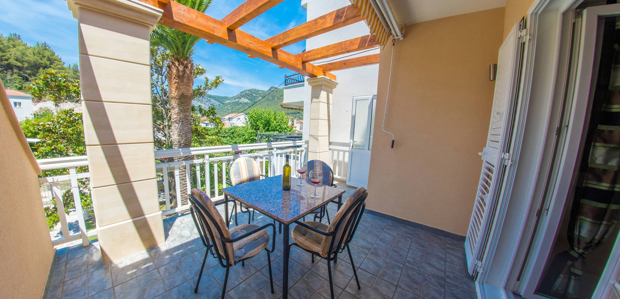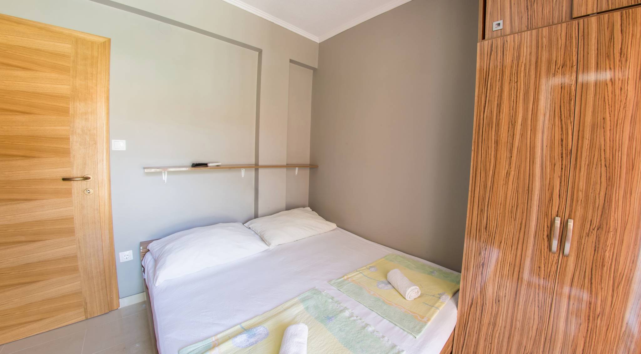 The apartment (83 m²) is suitable for up to 5 (4 + 1) persons. It has two rooms equipped with a double bed, an extra bed, a kitchen with a refrigerator with a freezer, a stove, a sink, basic dishes and cutlery, two bathrooms with a shower and a toilet. WiFi is available in the apartment, LCD TV and 3 air conditioners. The terrace has metal garden furniture and a parasol. The apartment has one parking space.