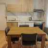 The kitchen has basic equipment, cutlery, a refrigerator with a smaller part with a minus chamber, a table and chairs.