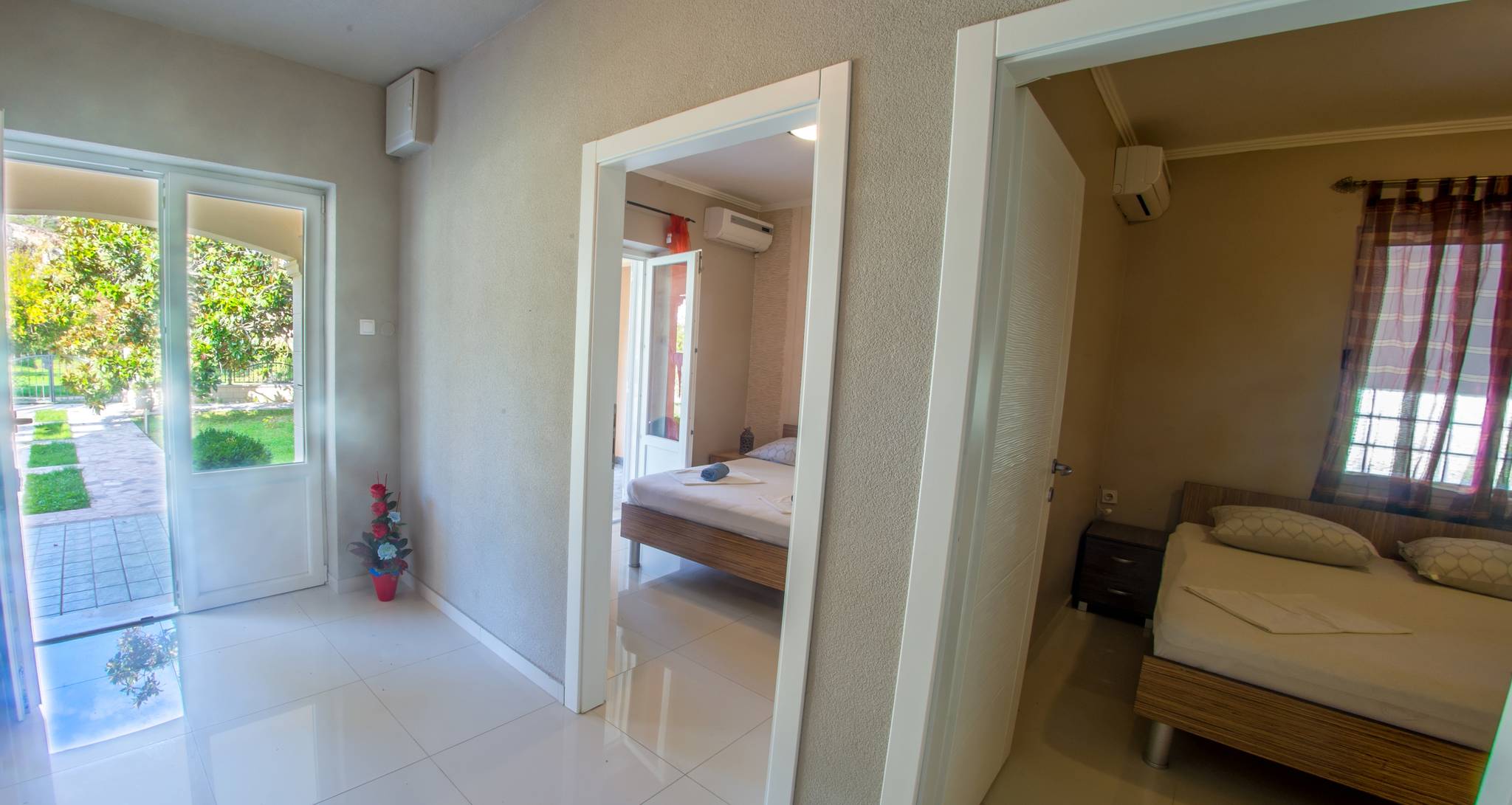 Die für bis zu 4 Personen geeignete Wohnung verfügt über zwei Zimmer und ist mit einem Doppelbett und einer ausziehbaren Couch als Zusatzbett ausgestattet. Die Wohnung verfügt über eine Küche mit Kühl- und Gefrierschrank, Herd, Spüle, Grundausstattung an Geschirr und Besteck, ein Badezimmer mit Dusche und Toilette. WLAN, LCD-TV und Klimaanlage sind vorhanden. Zur Wohnung gehört eine 20m² große Terrasse mit Gartenmöbeln aus Metall und Sonnenschirm. Ein Parkplatz ist vorhanden.
